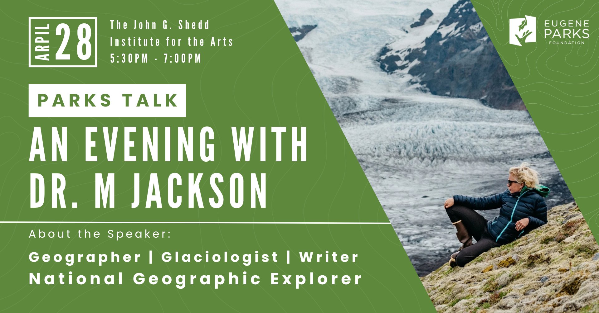 Join Eugene Parks Foundation for an inspiring Parks Talk featuring glaciologist and storyteller Dr. M Jackson, plus a special polar photography exhibit by National Geographic photographer Susan Seubert.